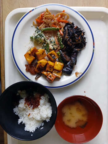 ・ 夕食は、バイキングスタイル、 ベジタリアンの当方にとって、大いに助かりました。 20人に満たない空いていました。