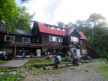 ・ 予定どおりの時間に、今夜の宿の村営頂上山荘に到着。