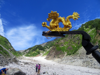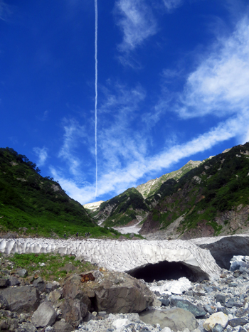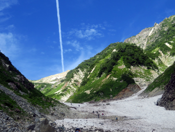 ・ 大雪渓登山中は、天然クーラーが強烈に利いてるような、強い冷風を身に受けながらの、気持ちの良い登山でしたが、たまに熱風が吹いてきたり、灼熱の光線を浴びながらの変化に富んだ状況でした。