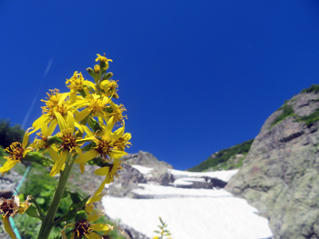 | ミヤマアキノキリンソウ : 猿倉 → 白馬尻。 ミヤマキンポウゲ : 葱平(ネブカッピラ)。 〃 〃 : 〃 | ||
