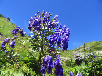 | クルマユリ(ユリ科) : 小雪渓 | ホソバトリカブト : 〃 | シロウマアサツキ(ユリ科): 〃 |
