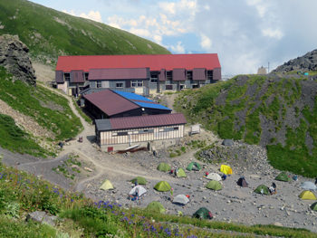 新宿都庁BT 23:00 ≫(中央自動車道) ≫ ≫ 八方で乗換 5:15 ≫ ≫ 5:30 猿倉登山口 5:50 → 7:10 白馬尻 7:20 → 9:50 ネブカッピラ → 12:30 村営頂上宿舎 泊 | ||||