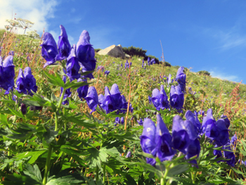 | クルマユリとハクサンフウロウ : 小雪渓 | トリカブトとシシウド:村営頂上小屋直下 | クルマユリとミヤマアキノキリンソウ:〃 |