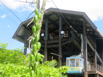・ 散策終了後、ロープウェイとゴンドラで栂池自然園から栂池高原「栂池高原駅」(標高839m)まで、標高差1,000m、全長5,320mの長大な空中散歩を楽しみました。