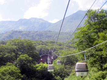・ 栂池ロープウェイで200m・5分。 栂池ゴンドラリフト「イヴ」に乗り継ぎ、4,120m・20分で、栂池高原駅に到着。