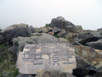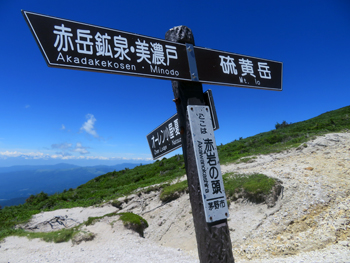 | 硫黄岳山頂標識 : 赤岳方面 | 〃 & 龍 | 赤岳 |