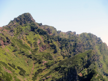 ・ ザレた急降下の岩道を下り、文三郎との分岐を、中岳方面へ左折。一旦登り中岳通過。