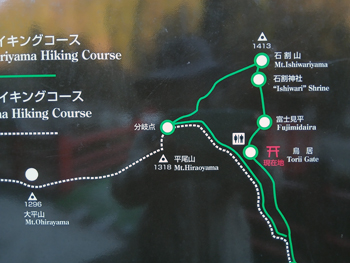 | 大平山登山口 | 石割山連山 | 石割神社入口 413号線分岐地点 |