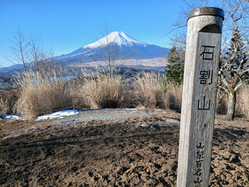 ・ 石割山へは何度も来ているので、毎度同じ風景の写真になりますが、真冬の真っ白に輝いた富士山は最高です。
