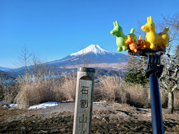 | 石割山 山頂(1,413m) 富士山&雪だるま 〃 | 〃 富士山&山中湖 | |