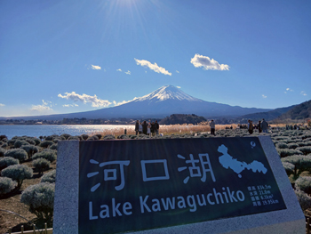 ・ その後、山中湖湖畔にて、快晴の下、真っ白に輝いた冬の富士山を撮影。