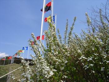| :祈りの丘。 アザミ(薊)(キク科):祈りの丘。 フジグロセンノウ(ナデシコ科、別名:オオサカソウ):〃 | ||