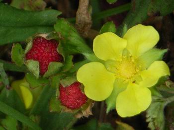 | ヘビイチゴの花と実 : (バラ科) | ホウチャクソウ : (ユリ科) | |