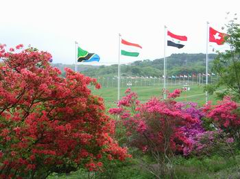 | (’10)H22年4月14日 ラッパスイセン : 道場入口。 サクラ(染井吉野) : P−2前 | 〃 シダレサクラとスミレ : 野外会場外 | |